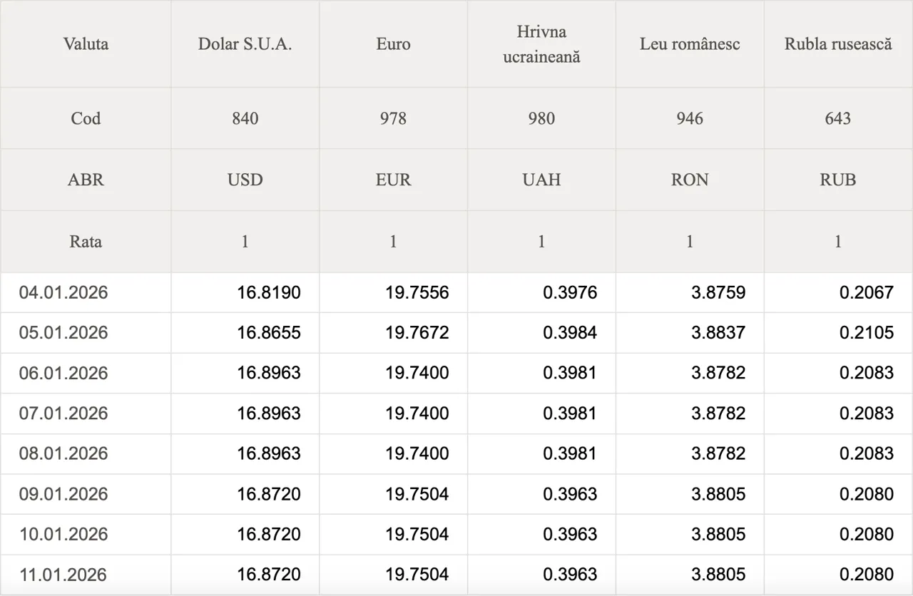 Astfel, un euro are valoarea de 19 lei și 75 de bani, transmite Ultimelestiri.md.