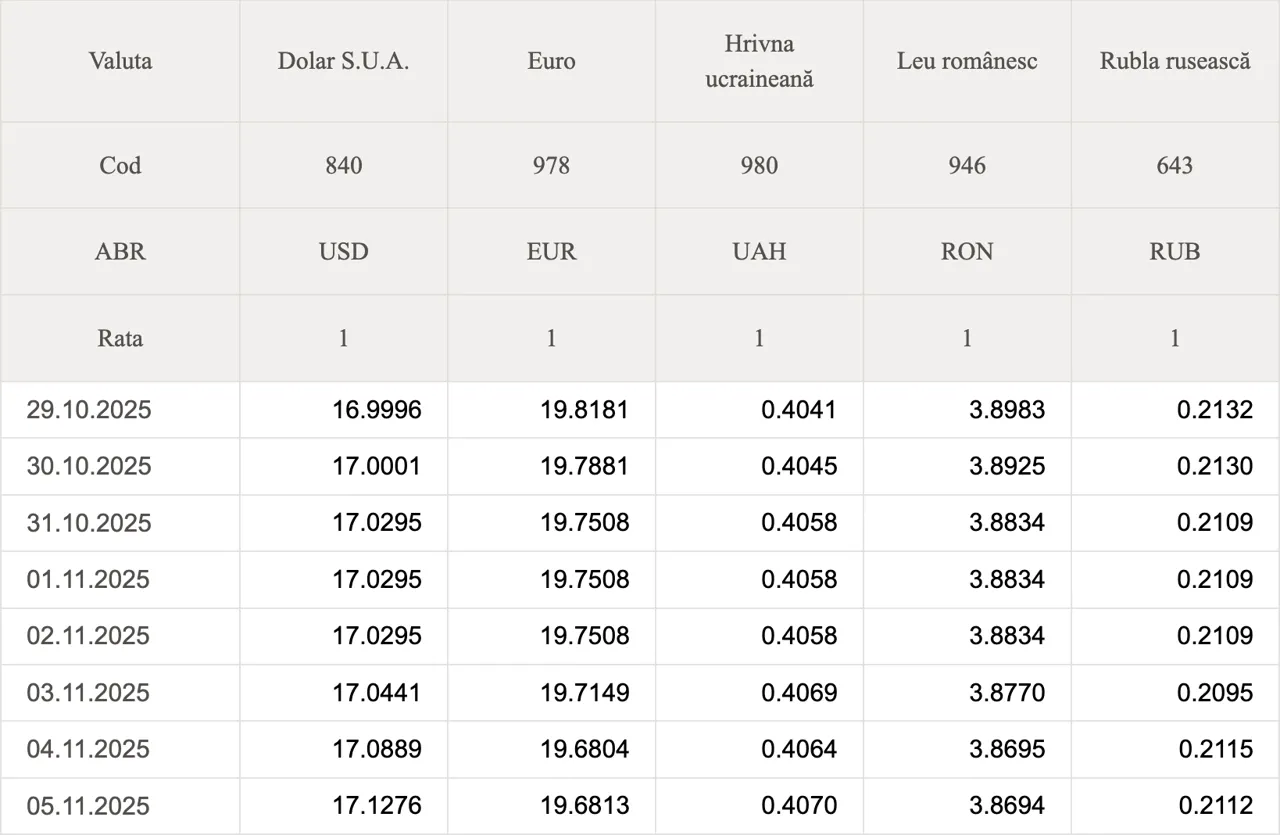 Astfel, un euro are valoarea de 19 lei și 68 de bani, transmite Ultimelestiri.md.