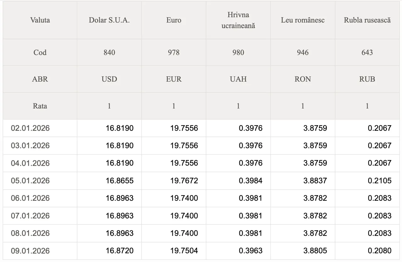 Astfel, un euro are valoarea de 19 lei și 75 de bani, transmite Ultimelestiri.md.