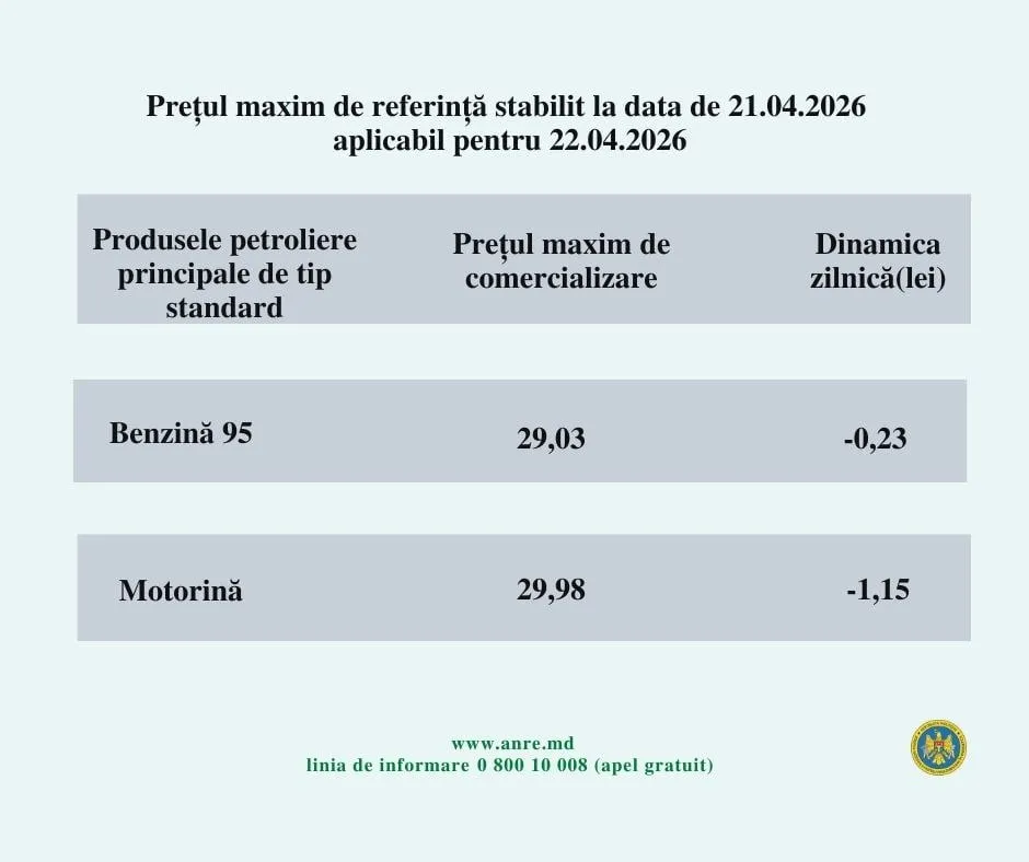 Astfel, prețul unui litru de benzină A95 nu trebuie să depășească 29,03 lei, iar cel pentru un litru de motorină – 29,98 lei, transmite Ultimelestiri.md.