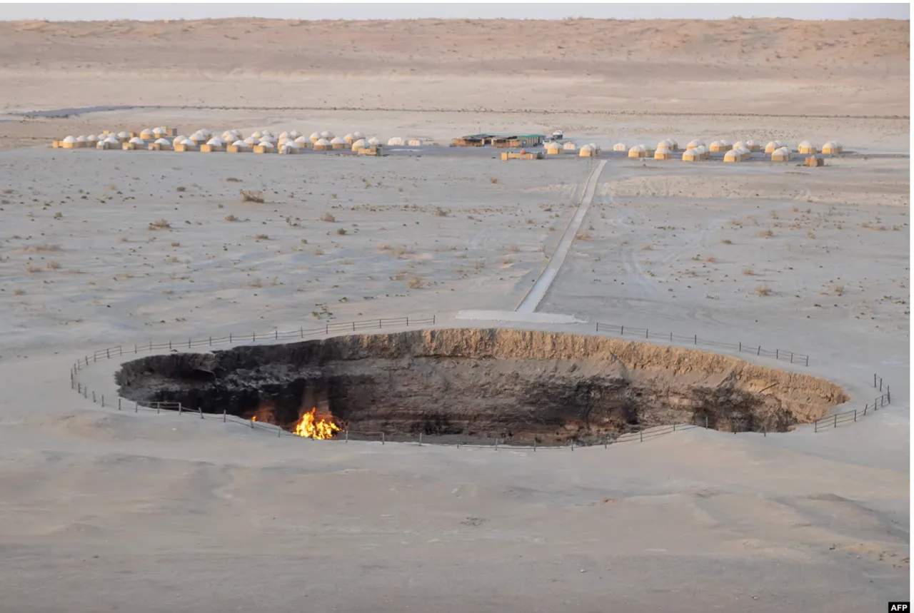 Se crede că acest crater din deșert s-a format în anii 1960 sau 1970, când o platformă sovietică de forare a gazelor s-a prăbușit, iar metanul a început să iasă la suprafață. Având în vedere riscul de asfixiere a sătenilor din apropiere, s-a luat decizia de a aprinde gazul, care de atunci arde încontinuu, transmite Ultimelestiri.md cu referire la romaniaeuropalibera.org.