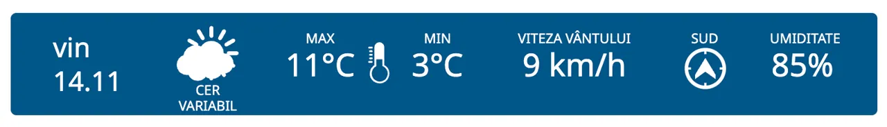 În sudul țării, temperaturile vor fi cuprinse între +5° și +13°C.