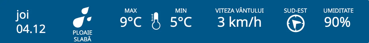 Potrivit Serviciului Hidrometeorologic de Stat (SHS), vântul va sufla din sud-est și va avea o viteză maximă de până la 9 km/h, iar umiditatea aerului va fi de 90%, transmite Ultimelestiri.md.