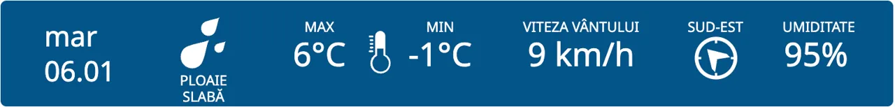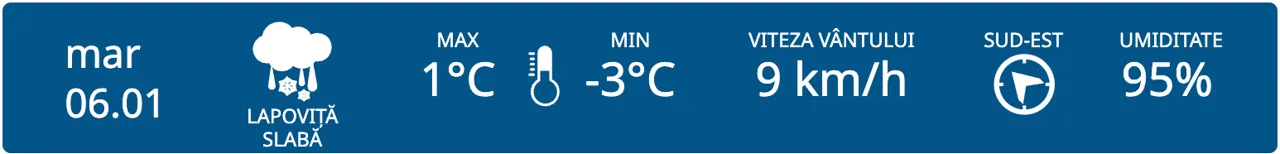 La nord, termometrele vor arăta temperaturi cuprinse între -3° și +1°C.
