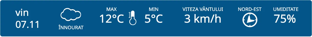 Potrivit Serviciului Hidrometeorologic de Stat, vântul va sufla din nord-est și va avea o viteză de 3-9 km/h. Umiditatea aerului va fi de 75%, transmite Ultimelestiri.md.