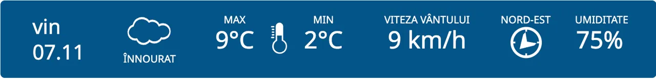 La nord, termometrele vor arăta temperaturi cuprinse între +2° și +9°C.