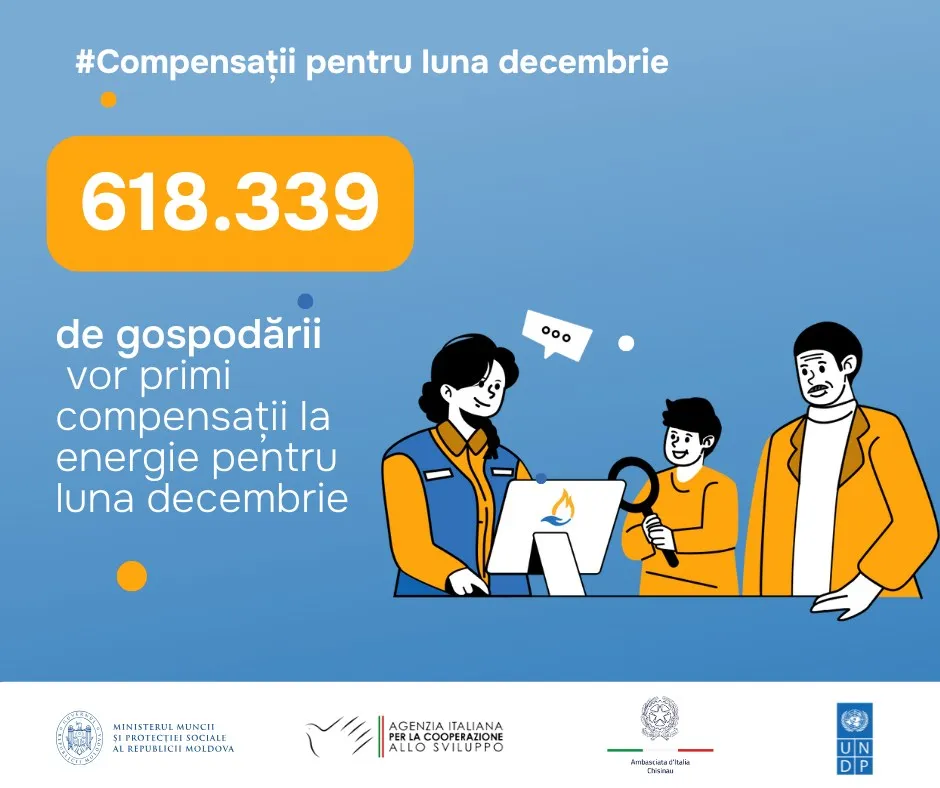 Totodată, Casa Națională de Asigurări Sociale (CNAS) a finanțat plata compensațiilor la energie acordate sub formă de plată monetară în sumă de 464,1 milioane de lei. Astfel, din 12 ianuarie, plățile vor putea fi ridicate de la oficiile poștale din întreaga țară, în baza buletinului de identitate.