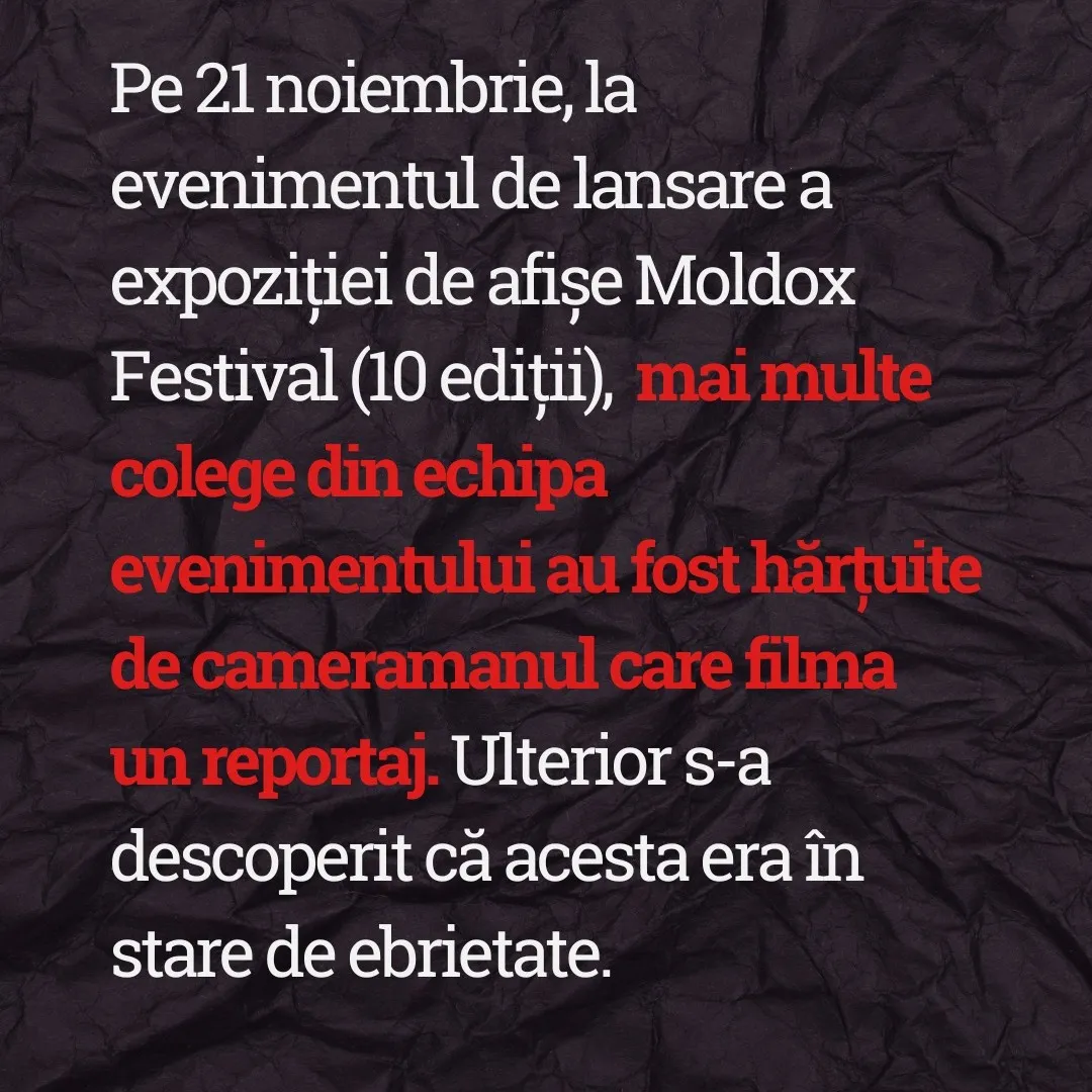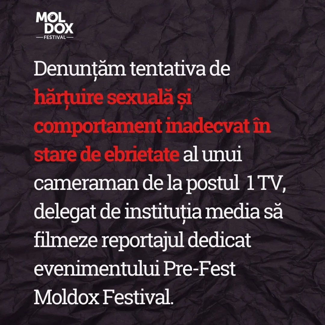 Potrivit Moldox Festival, cameramanul nu doar că ar fi manifestat un comportament inadecvat față de tinere, dar s-ar fi aflat și în stare avansată de ebrietate în timpul filmărilor, transmite Ultimelestiri.md.
