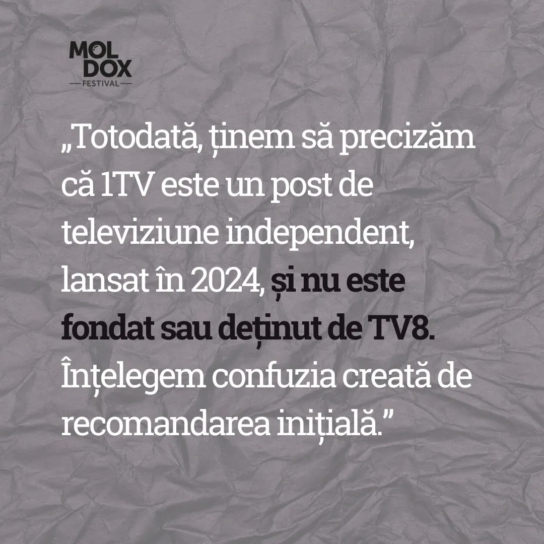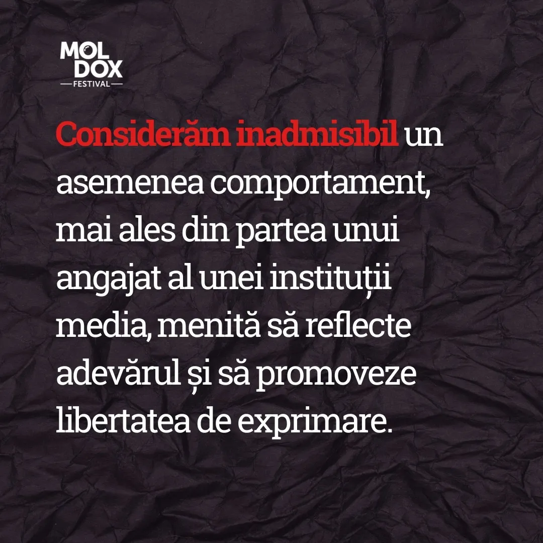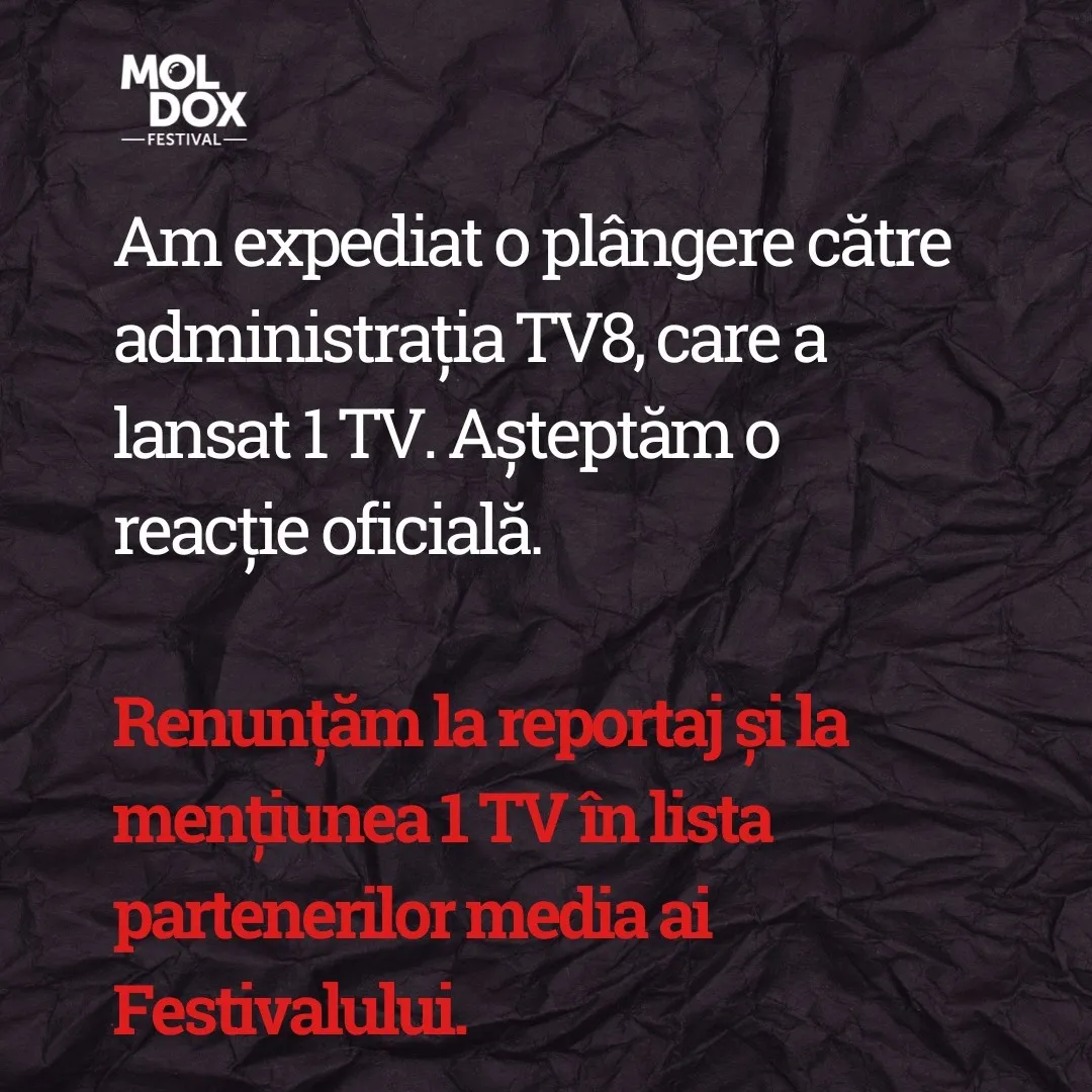 Moldox Festival a anunțat că excluderea 1TV din lista partenerilor evenimentului a fost decisă imediat după incident.